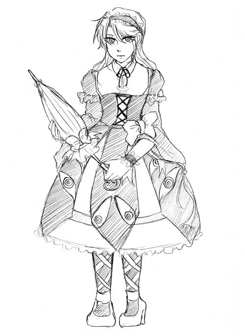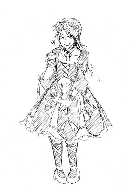 ツイッターで描く事になったロリータ服の黒崎さんと、それから展開したロリ条たんのイラスト。