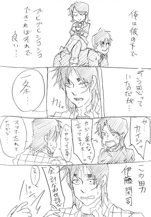 本当は「村上とカイジが一条を取り合って喧嘩」だったんですけど、村上がひたすらきもいだけの漫画になってしまいました…