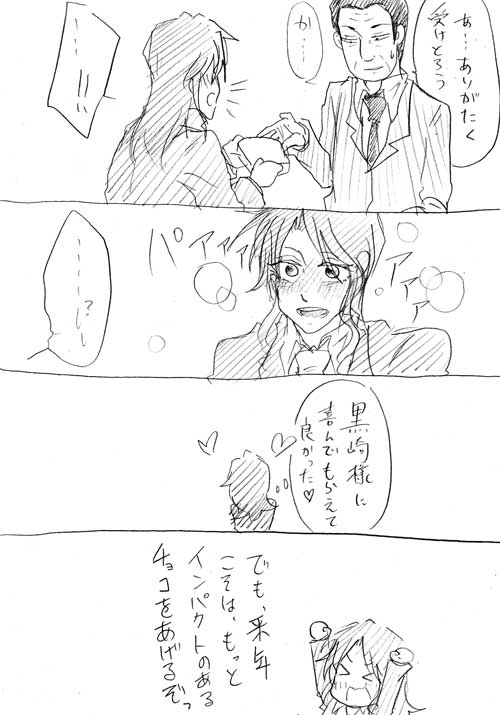 一条ちゃんが、黒崎様にチョコをあげるだけの漫画です。