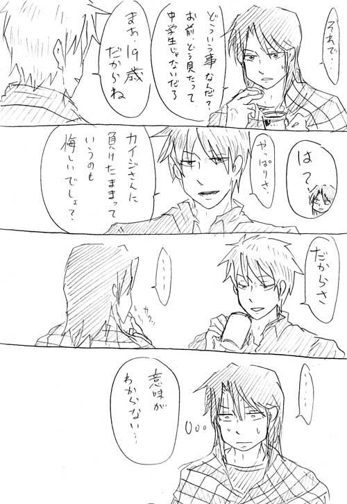 前に描いた、カイジがアカギ連れてくる話の続編です。